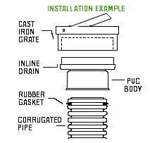 Inline Drains are typically used at the beginning of a drain line, or as a means to enter a line through a tee and riser pipe.