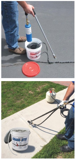 Since 1999 this patented, lifetime guarantee product has been successfully filling asphalt and concrete joints and cracks. We now offer it in gray for concrete (or faded blacktop) and also in bulk spools! Try our new CSX-1000 PRO MELT Torch for faster walk-behind application! For more information or to order online please visit www.crackstix.com