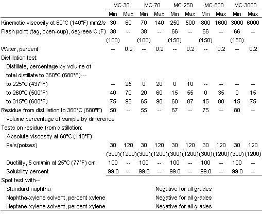Medium Cure Asphalt Cutbacks shall as a minimum meet the requirements set forth in